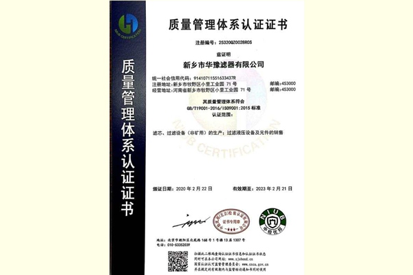 新鄉(xiāng)華豫集團(tuán)ISO9001認(rèn)證證書