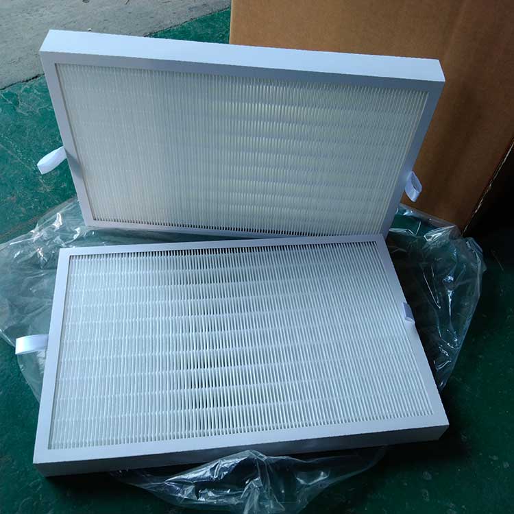 過濾材料是以折疊形式裝入高強(qiáng)度模切硬紙板內(nèi),迎風(fēng)面積增大。流入的空氣中的塵埃粒子被過濾材料有效阻擋在褶與褶之間。潔凈空氣從另一面均勻流出,因此氣流通過過濾器是平緩和均勻的。視過濾材料不同,它所阻擋的粒徑從0.5μm到5μm而不同,過濾效率也不同 。