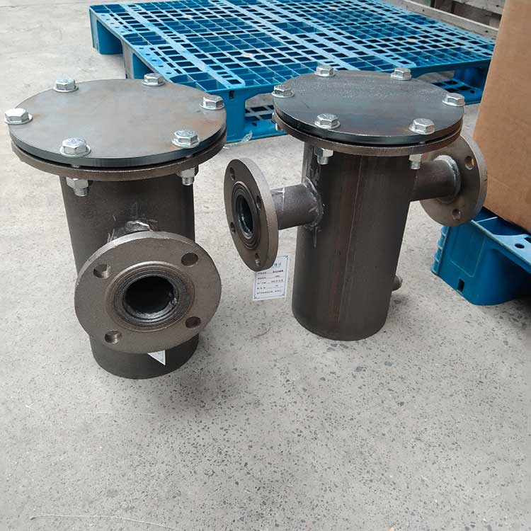 籃式過濾器主要由接管、筒體、濾籃、法蘭、法蘭蓋及緊固件等組成。當流體進入有一定規格的濾網的濾桶后,其雜質被阻擋,而清潔的濾液則由過濾器出口排出,當需要清洗時,只要將可拆卸的濾桶取出,處理后重新裝入即可,因此,使用維護極為方便。籃式過濾器具有結構簡潔,阻力小,排污方便等特點。適用介質可為水、油、氣。一般通水網為18~30目,通氣網為40~100目,通油網為100~480目,可按用戶要求制作濾網,介質溫度:≤200℃。